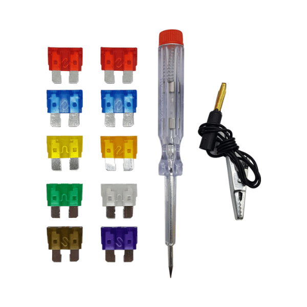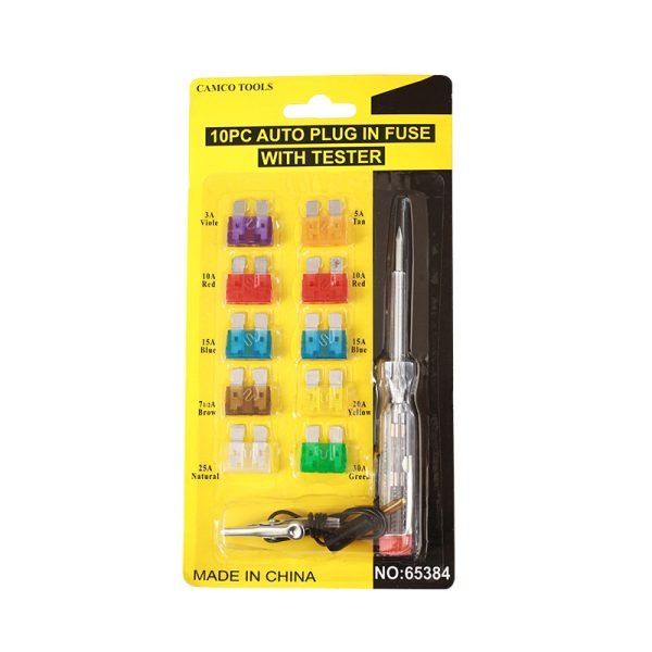 - تستر فیوز خودرو CAMCO NO/65384 ابزاری کاربردی برای عیبیابی سریع فیوز های خودرو است که با طراحی ساده و عملکرد دقیق، امکان تست انواع فیوزهای خودرو را تنها با قرار دادن یک سر تستر روی بدنه و لمس فیوز فراهم میکند. این تستر با قابلیت حمل آسان، سرعت بالا در تشخیص قطعی فیوز و بستهی همراه شامل فیوزهای پرکاربرد، انتخابی ایدهآل برای تعمیرکاران، برقکاران خودرو و استفاده خانگی محسوب میشود. این محصول علاوه بر تستر و جک سوسماری، شامل 10 عدد فیوز از 3 آمپر تا 30 آمپر می باشد.