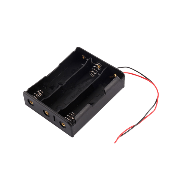 این جاباتری برای نگهداری و استفادهی همزمان از 3 عدد باتری لیتیوم-یون سایز 18650 به صورت سری طراحی شده است. در این حالت، ولتاژ خروجی حاصل از مجموع ولتاژ هر سه باتری از طریق سیمهای قرمز و مشکی در اختیار شما قرار میگیرد.